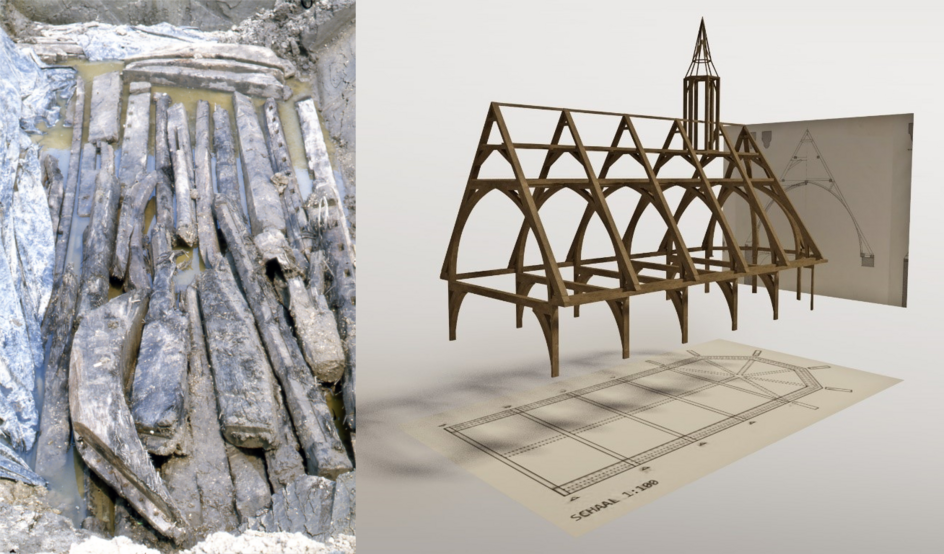 Niet helemaal een scheepswrak, maar wel een gezonken scheepslading is de bijzondere vondst van een eeuwenoud ‘bouwpakket’ voor een kerkkap. Deze verzameling houten balken werd gevonden tijdens de inpoldering. Het gaat in totaal om minstens 80 onderdelen, die samen een kap vormen van ongeveer 9 bij 22 meter. Het hout is waarschijnlijk in de 16e eeuw vervoerd over de Zuiderzee maar van boord gevallen of met schip en al vergaan.