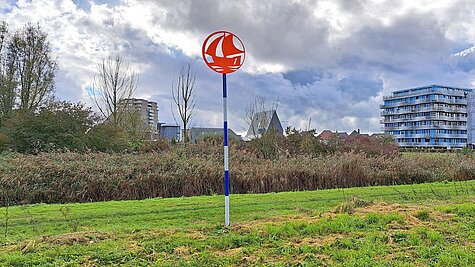 Link opent een vergroting van de afbeeldingEr moeten nog veel meer scheepswrakken in Almere liggen. Meestal worden ze pas gevonden bij het ploegen of bij het graven van sloten. Een scheepswrak dat op het droge ligt, vergaat snel. Een wrak blijft het beste bewaard door het nat te houden, bijvoorbeeld door het onder de grondwaterspiegel ‘in te kuilen’. Aan de buitenkant is daarna hoogstens een kleine heuvel te zien, vlak langs een weg of fietspad. Sommige vindplaatsen worden aangegeven met een kunstwerk.